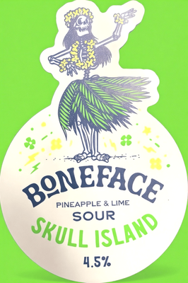Tropical is topical right now and Boneface has booked a flight to Skull Island with this heady brew of Pineapple and Lime. There's sourness in the form of a tangy citrus bite while light malt undertones remind you this really is a beer. Effervescence and light acidity make it very sessionable so linger under that umbrella and have another.