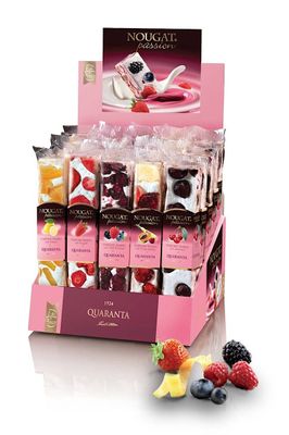 Made by QUARANTA, an iconic Italian brand renowned for its artisanal expertise, this nougat bar is perfect for gifting, sharing, or savoring on your own. Each bite bursts with the natural sweetness of premium fruits and the smooth texture of high-quality nougat, making it a sophisticated addition to any dessert table or a delightful snack for any occasion.